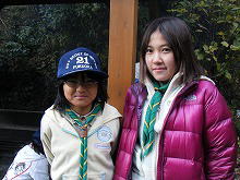 | 左から小学5年生のながのさん、中学1年のかねこさんです。福岡21団のボーイ隊には5人の女子スカウトが在籍しています。 |