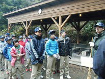 | ビーバースカウト隊がハイキングから帰ってきました。餅つきを体験します。 |