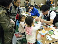 | こちらも自然の素材を使って作品を作ります。大人も子どもも熱中してリース作りを楽しみました。素敵なクリスマスを迎えてくださいね! |