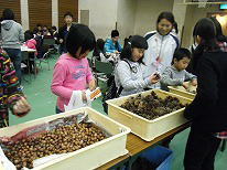 自然の素材を使って工作をします。どの木の実で何を作ろうか迷っちゃうなぁー。 |