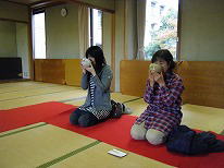両手を真っ白にして、勾玉をピカピカに磨いていました。中には顔まで真っ白になって頑張っている人もいました。 |