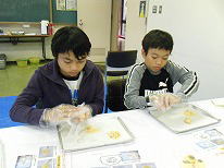 パックに入れる時も本物に見えるように調整します。お家の人をびっくりさせることができたかな? |