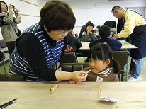 科学実験ショーも行われました。「てこの原理」を利用して、小学生がスプーン曲げを成功させた時は拍手が起こっていました。 |