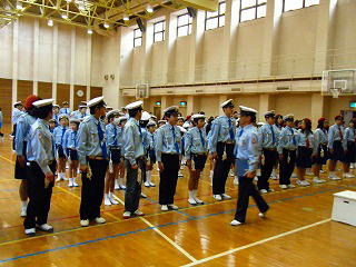 | 朝・夕のつどいでの整列の様子です。ピシッと決まっていますね。 |