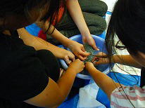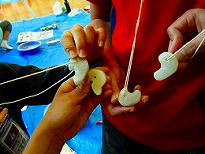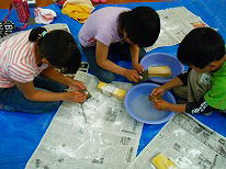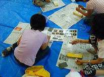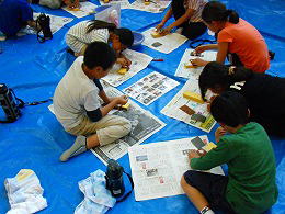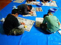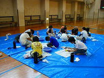 用具が配られ、班のみんなで説明書きを読みます。 |