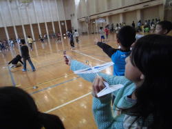 | 実際に飛ばしてみるとみんなビックリ!紙飛行機は想像していた以上に飛んでいくため、みんなとても興奮していました。さらに高く、遠く飛ばせるように羽を曲げたり、重りをつけたりして工夫をしていました。 |