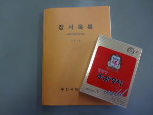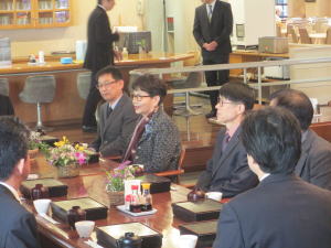 当センターの運営方針や事業の説明が行われました。また記念品の交換が行われ、当センターからは和独楽をお渡ししました。釜山広域市立市民図書館の皆様からは図書館に所蔵されていた貴重な日本の書籍目録や高麗ニンジン茶を頂きました。