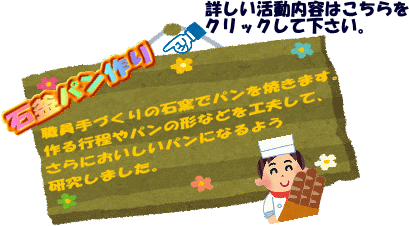 | 次年度の学習プログラムに生かせるよう、「石釜パン作り」「ダッチオーブン料理」では、現在新しいメニューの開発に努めています。 | ||||