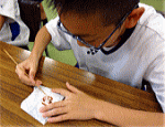 | 先生から、七宝焼きセットを受け取り、活動スタート! |