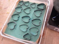 次に、パレットにロウを流し込み、固まった後、型を使ってくり抜きます。 |