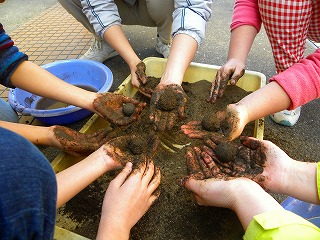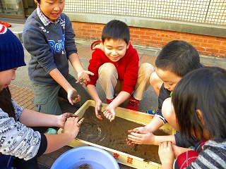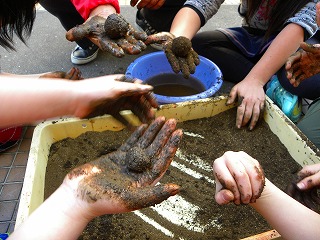 土を使ってピカピカどろ団子