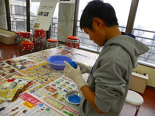 2日目:今日は、先週作ったどろ団子に好きな色を塗り,ひたすら磨きます!