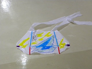 ストローで骨組みを作り、絵を完成させてプレイホールで飛ばしました。