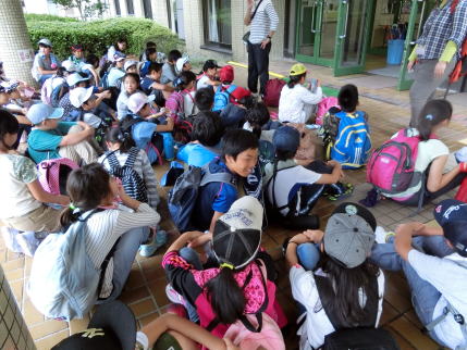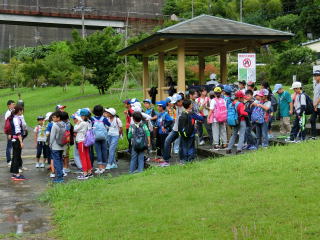 | しばらく自然とふれあった後センターへ! 席田小学校の生徒さんはとても元気よく到着しましたね。 |