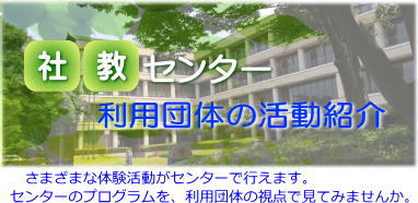 | 社教センターを利用する団体の、研修や活動の様子を毎月ご紹介します。 |