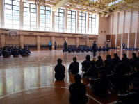 退所式前に、3日間活動を共にした補助指導員によるレクレーションを講堂で行いました。