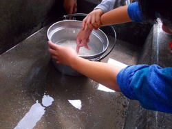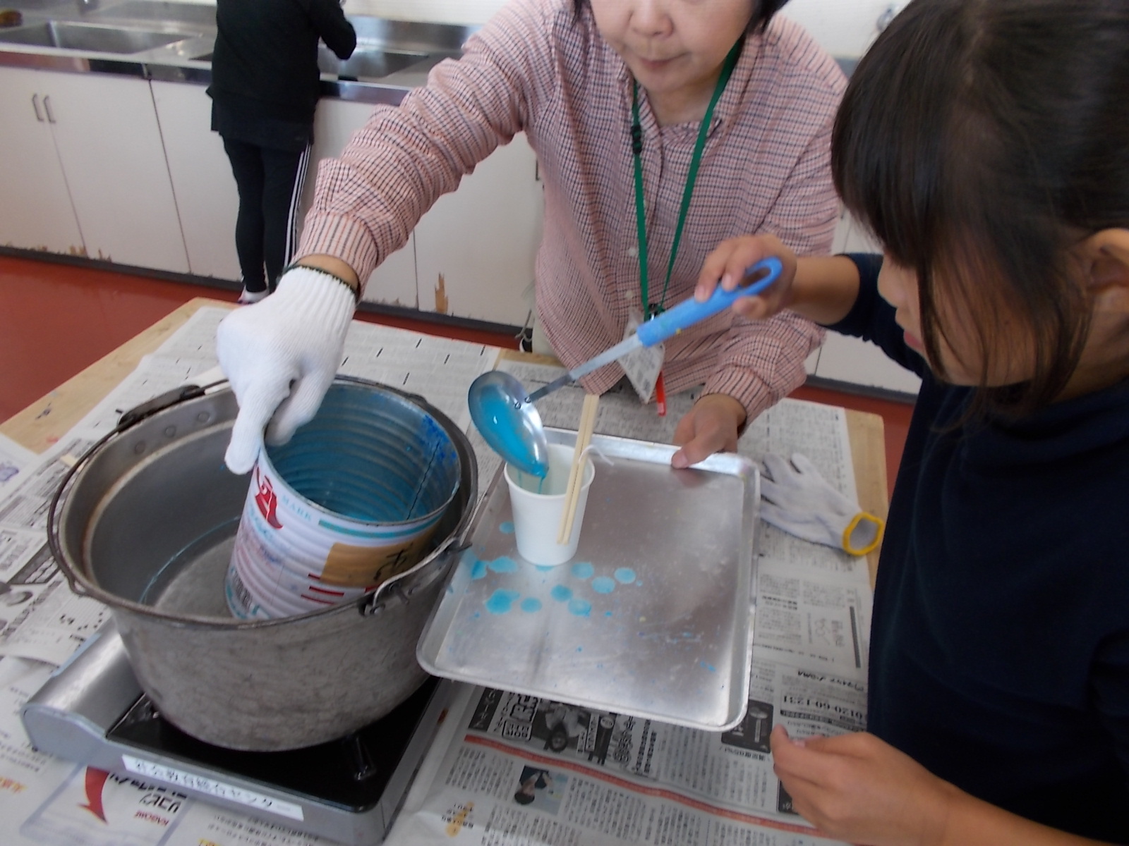 | 次に、紙コップにロウを流し込み、固まるまで待ちます。 |