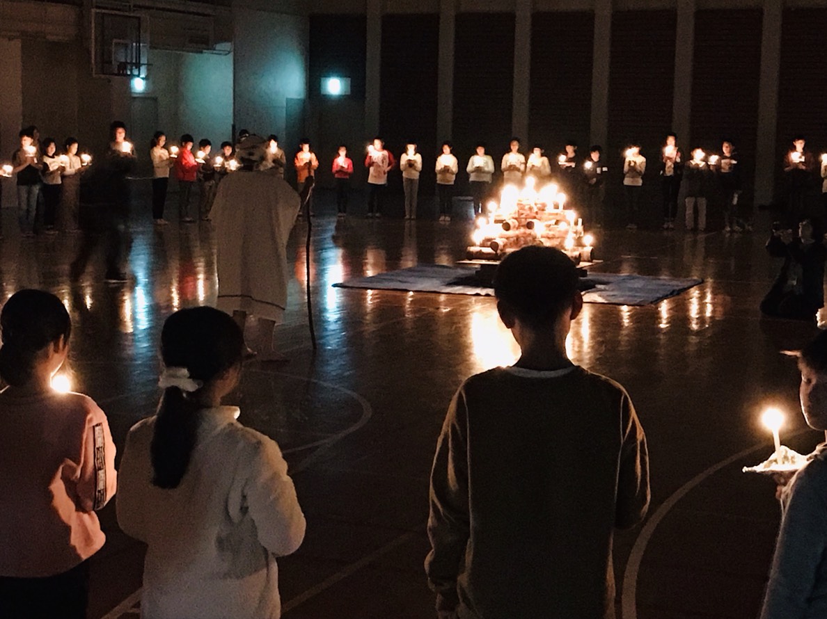 二日目夜に体育館でキャンドルのつどいを行いました。