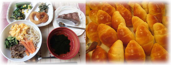 レストランでは、美味しくかつヘルシーな料理、時にはアレルギーにも対応した食事を提供いただいています。朝食には焼きたての自家製パンの提供もあります。