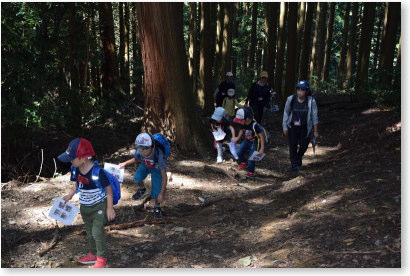| 「はじめてチャレンジ!ドキドキキャンプ 第1回目」 大和の森遊歩道(若杉山)での散策風景 |