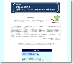 「研修・情報室」では、インターネットを活用した取り組みを行いました。主催事業「社会教育・生涯学習関係職員等研修会」「学校とともにある地域づくり・人づくり・推進セミナー」をWEB上で動画を配信する形で開催し、多くの方に御視聴・参加いただきました。