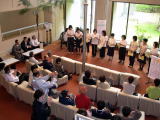 コーラスグループ"グリーン ドリームス"による歌の披露がおこなわれました。お昼休みのわずかな時間を使っての練習でしたので、発表に多大な不安がありましたが、参加者の方の温かい手拍子とアンコール(!?)をいただき、終えることが出来ました。