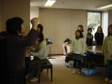私たちの業界用語(!?)で「県立3施設」といえば、社会教育総合センター・英彦山青年の家・少年自然の家「玄海の家」の3つの青少年教育施設のことをいいます。本日、その3施設の職員を集めての研究会が開かれています。家庭、地域、学校をつなぐ県職員としての資質向上を目的に今年度から始まった研究会であり、講師役も各施設の職員が務めています。写真は当センター職員が講師役を務める様子です。講師役の本人にとっても大いに勉強なったとのことでした。(黄シャツ)