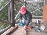 今日は朝から曇っていて、時々小雨もパラパラ… 肌寒い一日となりました。 そんな中、ボランティアの田代さんを中心に、指導員もお手伝いをして当センター裏山にあるりんどう小屋の修理を行いました。グラグラしていたウッドデッキが、キレイに美しく生まれ変わりました♪ ここから見える景色は絶景!福岡タワーやヤフードームまで一望できますよ♪静かでキレイな景色を見に来ませんか?(なりちゃん)