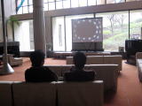 今日も寒さが厳しいですね。しかし、今日のセンターはたくさんの方々でにぎわっています。本日、幼児から企業の方まで、9団体・570名のみなさんがセンターを利用してくださっています。皆さんの利用に合わせて、視聴覚教育協会による「フィルムシアター」が開催されました。今日のような寒い日、どこか懐かしいと感じさせてくれる「フィルムシアター」が、心をホッと温めてくれます。