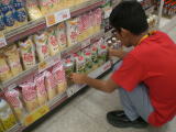 本日から3日間、全10箇所の老人介護・図書館などの施設、スーパー・植木などの会社、寺院で生徒達は就労体験を行います。これは、スーパーで商品の整理(前出し)を行っている写真です。