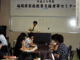 少し固い話で恐縮ですが、去る7月1日に教育振興基本計画が閣議決定され、『地域で学校を支援する仕組みづくり』に取り組むことが重点事項としてあげられました。その趣旨を踏まえ、当センターでは教職員をはじめ関係者を対象にセミナーを開催しました。琉球大学の井上講四教授による講演や春日市、直方市、大分県湯布市の先進的な事例の紹介などを行いました。詳細は改めて、本ホームページでご報告します。(京)