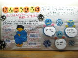 体育館入り口には、健康をテーマにした掲示板があります。冬はインフルエンザが猛威をふるったため、インフルエンザ予防をテーマに掲示しています。