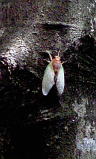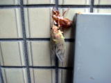 この写真をご覧ください。これは、セミが脱皮しようとしているところです。脱皮しているときは無防備になるため、通常セミは、ハチやアリなどの天敵に狙われにくいように、夕方から夜にかけて脱皮を行うそうです。しかし、このセミは昼間から脱皮を始めて、18時頃見た時には、もう脱皮を終えていました。よっぽど早く成虫になりたかったんでしょうね。これから、センターの中庭では、セミの脱皮をたくさん見ることができます。彼のようなあわてん坊のセミにも会えるかもしれませんね。(ドゥー)