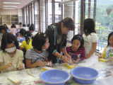 今日は「アウトドアキッズ」という団体のみなさんが草木染めでエコバッグを染めました。参加者のみなさんが、家庭で調理された玉葱の皮を持参され、その皮を煮出して、染色液を作りました。そして、染めたものは、エコバッグ!とても素敵なアイデアだったと感心しました。参加された小学生のみなさんは、とても上手に模様を作られており、色々な柄のエコバッグを見るだけでも楽しかったです。これから買い物の際には、オリジナルのエコバッグをぜひ使ってほしいと思います。みなさんも、ハンカチやTシャツに限らず、エコバッグなども染めることができる「草木染め」を体験しに来ませんか? (Kevin)