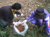 11月21日(土)、22日(日)に、当センター主催事業「ゆずフェスティバル」が開催されます。今日は、ゆずフェスティバルで使う自然の材料を、職員が協力して集めました。秋が深まる季節、たくさんのどんぐりやまつぼっくりを集めることができました。