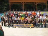強い日射しを浴びながらの調理や火おこしは、かなり暑そうでした。写真はかまどで火をおこすために薪を割っているところです。周りは心配そうですが力強く薪割りをしていました。今年度の参加者は33名、みんなそれぞれの役割を楽しんでいました。がんばれ★(夕焼け)