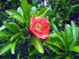 梅雨入りしましたが、本日は晴れました。 センターのザクロの花がきれいに咲きました。秋には甘酸っぱい実をつけます。