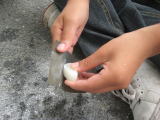 今日は古賀中学校の生徒のみなさんが勾玉づくりに挑戦しました。勾玉は高ろう石にマジックで印をつけ、紙やすりで削りながら形をつくっていきます。さらに、水やすりで光沢がでるまで磨いていきます。最後に、ひもをつけて首からさげられるようにします。2時間ほどひたすら磨くという根気のいる作業ですが、出来上がった勾玉はとてもきれいで、勾玉ペンダントをうれしそうにしている生徒さんの笑顔を見ると、作りあげたという達成感も大きいということがすぐわかります。(まあちゃん)