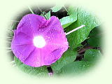 天然ブラインドの朝顔も、花をつけ始めました。とってもきれいなピンク色でしょう?センターにとって大切なカーテンです。今日の雨は、カーテンと朝顔にとって大切な雨となりました。早く大きくなって、緑と花柄になってほしいです。ちなみに、花言葉は「愛情のきずな、はかない恋愛、固い約束」だそうです。・・・いっぱいありますね。(P)