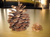 珍しい松ぼっくりをいただきました!左は500mlペットボトル程の高さのある大きなもの、右のはまるでバラの花か、ボタンの花のようなかわいらしいものです。 調べてみると写真左はダイオウショウ、右のはヒマラヤスギの実だということがわかりました。マツにもいろいろあるんですね。さてこれをどんな風につかったらステキになるかと考えるだけで、楽しい!!(夕焼け)