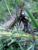 当センターの草むらで、トンボがバッタにおそいかかりました。バッタは苦しそうに暴れていましたが、トンボがしっかりかみついています。トンボが少し油断したその時、バッタは大きくはばたき逃げていきました。トンボは食事にありつけませんでした。センターにはたくさんの自然があります。ぜひ御利用ください。(イノッチ)