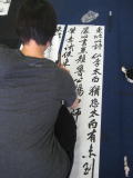 書道の達人の登場です。書道の練習をされている団体に、おじゃまをして写真を撮らせて頂きました。みなさん集中して筆を進めていました。みなさんすばらしい字を書かれていましたので、見ているだけで心が洗われたような気がしました。学生のみなさん、頑張ってください!(TAKA)
