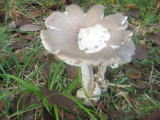 今日もさわやかな秋晴れですね。気持ちがいいので、昼休みにセンターの敷地内を散歩していると、大きなキノコを発見しました。 私は椎茸のバター焼きが大好きなので、収穫したい気持ちもありますが、果たしてこのキノコ、食べられるのでしょうか。どうみても椎茸ではありませんよね(笑)。どなたかこのキノコの名前など、ご存知の方がいらっしゃいましたら、ぜひ教えてください。(トト)