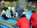 2011/11/25(金)晴れ 今日も11月の下旬とは思えないような寒い一日でした。本日は年末にセンターに置く門松作りを若杉の会の学習ボランティアの方にご指導を受け、まずは部品作りに挑戦しました。22日にご案内したものと比較するとながら大変太い竹を切ることから始まり、形よく切って加工するのも熟練の技が必要なことがわかりました。部品もそれぞれかなりの大きさのもので出来上がりが楽しみです。完成しましたらまた紹介したいと思います。そのころには雪が舞っているかもしれませんね。(ろい)