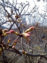 2012/03/27(火)晴れ 待ち遠しかった春がやってきています。今日は快晴!しかも最高気温17度にもなるそうです。暖かな日差しを受けてセンターの駐車場の桜のつぼみもピンク色の花びらをのぞかせています。(Akio)