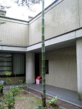 2012/5/10(木)晴れ 当センターの中庭に生えているタケノコを以前紹介しましたが、現在は写真のように成長しています。毎年、生えてきたタケノコのうち1本だけ残して、それにマジックで年度を記入しています。センターにおこしの際はぜひ御覧ください。(イノッチ)