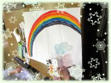 職員が、手作りで模造紙に絵を描いています。これは、センターのレストラン「そよ風」に掲示する絵です。利用者の皆さんに、少しでも気持ちよく、美味しく食べて頂くために、毎回アイデアを出し合って製作しています。今回のテーマは「虹の中を流れる そよ風」です。きっと食事の後には、心地よい「そよ風」を感じることができるでしょう。ぜひ、センターのレストラン「そよ風」をご利用ください。(ケン坊)