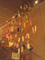 七夕の日です。センターのロビーには、先日の「いきいきファミリーキャンプ」で作った七夕飾りが展示されています。七夕以外に何かないか調べてみたら、今日は「竹・たけのこの日」なのだそうです。有名な「竹取物語」のかぐや姫が生まれたのがこの日だとして、1986年に制定されました。ちなみに、4月から5月にかけて成長記録がアップされていた中庭の竹はもう4階にまで届かんとしています。(七夕飾りに使おうかとも思ったのですが、あまりに大きくなりすぎて断念しました。 ) 不思議な事(暦の関係上仕方のないことですが)に「七夕」は秋の季語、でも、季節は本格的な夏を迎えようとしています。(とんちゃん)