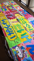 8月4日と18日に行われた「にこにこキッズ!体験塾」で実施された子どもプログラム「にこにこぬりぬり大きな絵」の作品です。みんなで協力して色を塗って1枚の大きな絵を完成させました。この絵は今後の「にこにこキッズ!体験塾」で張り出されます。小学1年生と年長さんのにこにこキッズたち全員が、はみ出すくらいダイナミックに塗ったり、反対に、はみ出さないように丁寧にムラなく塗ったり、カラフルに模様を付けたり、それぞれ工夫をして塗ってくれたことが近くで見るとよく分かります。見るたびに必ず発見があるとっても素敵な作品です。(ミミコ)