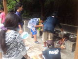 2学期も始まって 2012/9/ 6(木)晴れのち曇り 2学期が始まって一週間になろうとしていますが、早速小学校や中学校のご利用が始まっています。写真は須恵第三小学校の野外炊飯の様子です。もくもくと立ち上る煙にむせながらせっせと調理が進んでいきます。昨日も野外炊飯を体験しているので手際もよく豚汁ができました。今度はいい匂いが立ち上る中の食事です。「おいしいです!」という言葉があちこちから聞こえました。(とんちゃん)